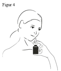8. Pust forsiktig inn og bøy ikke hodet bakover etter at du har sprayet. Dette vil forhindre at legemidlet renner ned i halsen og gir en ubehagelig smak i munnen (se figur 4).