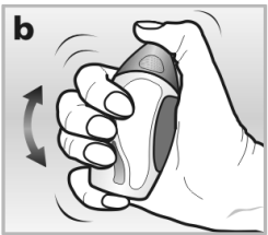 Når du bruker nesesprayen første gang bør du riste den kraftig i ca 10 sekunder med beskyttelseshetten på. Dette er viktig siden Avamys er en tykk suspensjon som blir til en væske når du rister den godt - se bilde b. Den vil bare kunne spraye når den blir en væske.