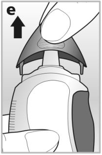 2. Fjern beskyttelseshetten ved å klemme ordentlig på hver side av beskyttelseshetten med tommelen og pekefinger - se bilde e.