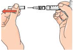 Snu sprøyteenheten opp ned og trekk opp den forordnede mengden oppløsning.