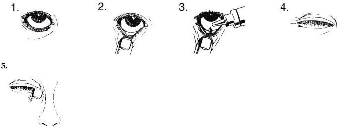 For å unngå infeksjon må passe på at flaskespissen ikke kommer i berøring med øyet eller andre ting. Sett på hetten og lukk flasken med én gang etter bruk.