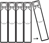 Pakningene inneholder 6 eller 18 PET/AL/PE-poser, hver pose inneholder 5 endosebeholdere, noe som gir totalt henholdsvis 30 eller 90 endosebeholdere i en eske.