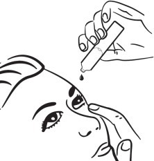 3. Dra forsiktig ned det nedre øyelokket slik at det dannes en lomme. Vri endosebeholderen opp-ned og klem på den slik at det kommer ut 1 dråpe i de(t) berørte øyet/øynene.
