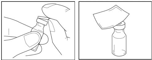 Dersom settet ikke ble oppbevart ved romtemperatur, la hetteglasset og sprøyten nå romtemperatur (15-25ºC) ved å la dem stå i romtemperatur i noen minutter. De skal ikke varmes opp på noen annen måte.