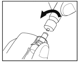 Uten å fjerne kanylehetten festes kanylen til sprøyten ved å vri den med urviseren til det møtes motstand.