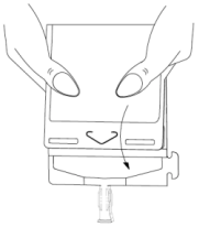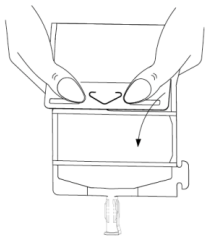 Press den brettede posen rett under kanten på oppløsningen for å bryte den andre forseglingen, slik at væsken når infusjonsporten.