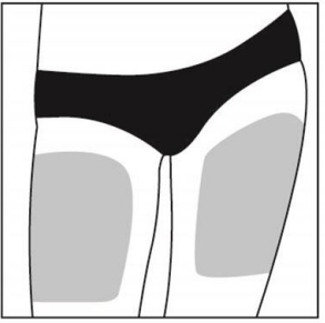 Område 2 og 3: Lårene (ovenfor knærne dine),