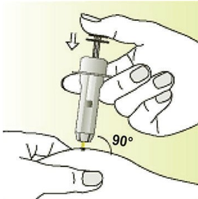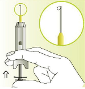 Fjern nålebeskytteren ved å dra den rett opp og kast den