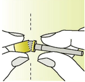 Mens du venter på at desinfeksjonsmidlet skal tørke, bryt perforeringen på etiketten og trekk nålehetten av