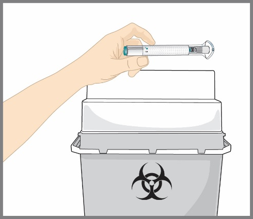 A. Ikke ta på kanylen eller sett på hetten igjen. Oppbevar den på et sikkert sted for å unngå å stikke deg ved et uhell. Kontakt lege, apotek eller sykepleier for instruksjoner om hvordan du skal returnere pennen.