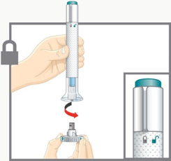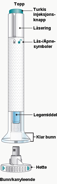 Pass på at pennen er låst. La hetten bli værende på til du er klar til å injisere.