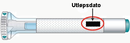 Pennen inneholder glassdeler. Håndter den forsiktig. Ikke bruk den dersom du mister den på en hard overflate. Bruk en ny penn for injeksjonen din.