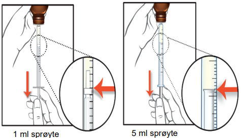 Dersom dosen din er mer enn 1 ml (100 mg), skal du bruke 5 ml-sprøyten (den største).