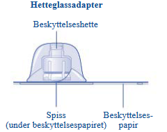 Bruk ikke hetteglassadapteren dersom beskyttelsespapiret ikke er fullstendig forseglet, eller dersom det er ødelagt.