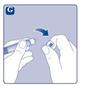 Ikke berør sprøytetuppen. Hvis du berører sprøytetuppen, kan bakterier overføres fra fingrene dine.
