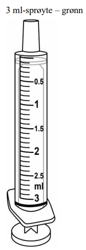 Dersom du mister eller ødelegger en sprøyte, eller ikke kan lese dosemarkeringene på en sprøyte, bruk en annen sprøyte fra pakningen eller snakk med apoteket.