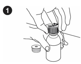 Oppløsningen er tilgjengelig i en hvit flaske med barnesikret, forseglet kork.