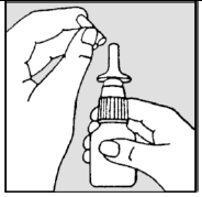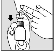 2. Hold flasken som figuren viser. La den hvile på tommelen og plasser langfinger og pekefinger på hver side av neseapplikatoren og press kragen kraftig ned.