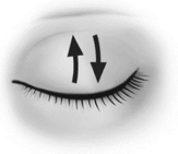 3. Trekk det nederste øyelokket nedover og se opp. Trykk lett på flasken til det faller en dråpe ned i øyet. Vær oppmerksom på at det kan ta noen sekunder før dråpen kommer etter at du har trykket. Unngå å trykke for hardt.