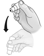 6. Før lokket settes på igjen rister du flasken én gang nedover for å fjerne eventuell oppløsning fra flasketuppen. Dette er nødvendig for å sikre at flasken fortsatt kan brukes.