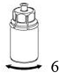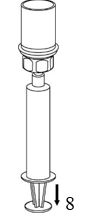 Trekk luft inn i en tom, steril sprøyte. Mens IDELVION-hetteglasset står loddrett kobler du sprøyten til Mix2Vial-settets Luer Lock ved å skru med klokken. Press luften inn i IDELVION- hetteglasset. |