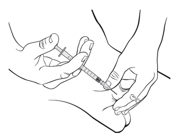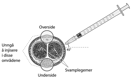 5. Trykk kanylen inn i penis og trykk forsiktig på sprøytestempelet og injiser all væsken.