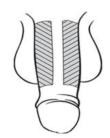 4. Vær sikker på at du ikke injiserer inn i urinrøret eller inn i synlige blodårer. Injiser i de grå områdene som vist på figuren.
