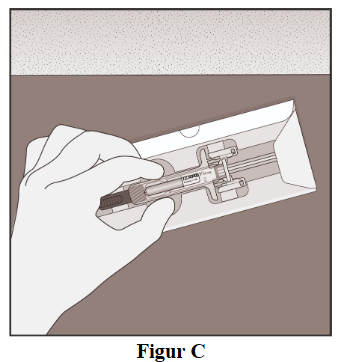 For å gjøre injeksjonen mer behagelig kan esken med den ferdigfylte sprøyten ligge i romtemperatur i ca. 30 minutter før du setter injeksjonen (figur A).