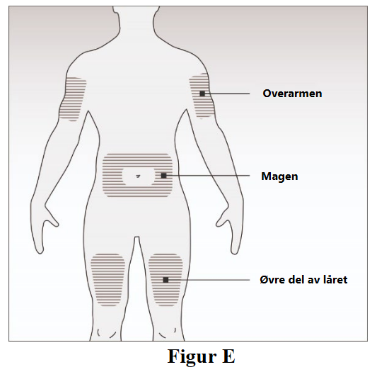 Velg injeksjonssted (figur E): Du kan bruke: