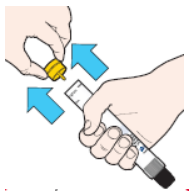 1. Hold Jext-injektor i den hånden du vanligvis bruker (den du bruker til å skrive med), med tommelen nærmest den gule sikkerhetshetten.