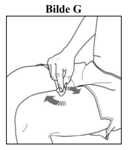 Rengjør injeksjonsstedet med sprittørken i en sirkelformet bevegelse. La det tørke før injisering (se bilde G).