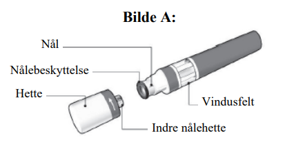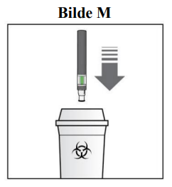 Kast den brukte pennen i en avfallsbeholder for skarpe gjenstander (f.eks. en stikksikker, lukkbar beholder eller lignende) (se bilde M).