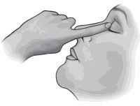 5. Lukk øyet og press fingeren mot indre øyekrok i ca. ett minutt. Dette hindrer at øyedråpene renner inn i tårekanalene.