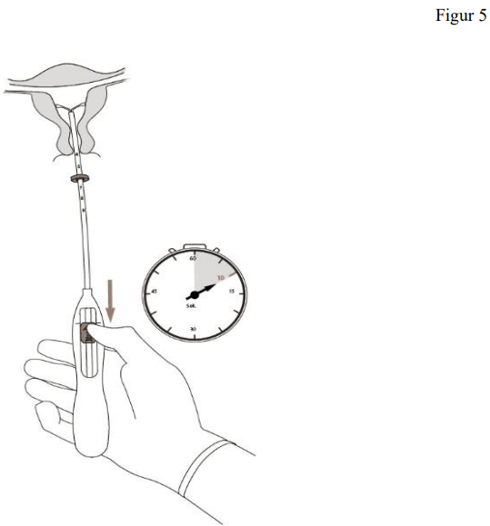 6. Før innføringshylsen forsiktig videre mot fundus i uterus inntil måleringen berører cervix. Kyleena er nå plassert ved fundus (figur 6).