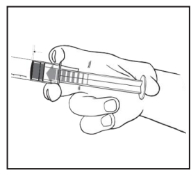 5) Fjern luften ved å trykke forsiktig ned stempelet og tøm om nødvendig overskytende dose før injeksjon.