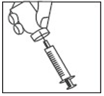Ta av hetten på den ferdigfylte sprøyten. Sett rekonstitueringskanylen (den lange kanylen) på sprøyten.
