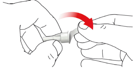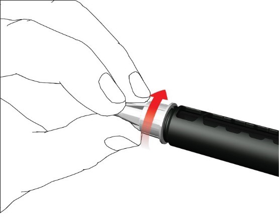 Advarsel: Unngå at kanylen bøyes eller knekkes. Vipp ikke pennen etter at kanylen er ført inn i huden. Vipping av pennen kan føre til at kanylen bøyes eller knekker. Brukne kanyler kan bli sittende fast i huden. Kontakt legen umiddelbart hvis en brukket kanyle sitter fast i huden.