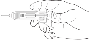 7. Hold den ferdigfylte sprøyten ved å gripe rundt nålebeskyttelsen med nålehetten pekende oppover.