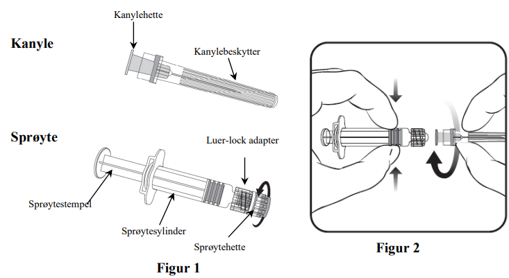 1. Skru løs sprøytehetten ved å skru den mot klokken (som vist i figur 1).