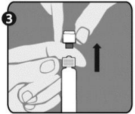 Etter fullført rekonstituering av vaksinen fjerner du lokket fra den andre nålen (som beskrevet i trinn 1 for nålene) og bytter ut nålen som ble brukt til rekonstituering med den andre nålen som skal brukes til administrasjon. Ikke bruk den samme nålen til rekonstituering og administrasjon.