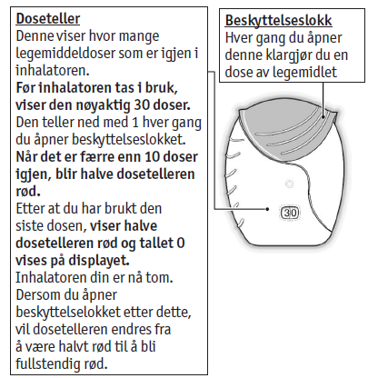 Dersom du åpner og lukker beskyttelseslokket uten å inhalere legemidlet vil du miste dosen. Den tapte dosen vil holdes inne i inhalatoren, men den vil ikke lenger være tilgjengelig. Det er ikke mulig at du ved et uhell tar en ekstra dose eller en dobbel dose i en inhalasjon.