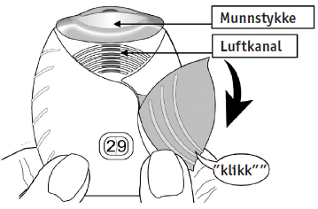 Når du tar inhalatoren ut av folieboksen vil den være i ”lukket” posisjon. Ikke åpne inhalatoren før du er klar til å inhalere en dose av legemidlet.