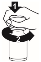For å åpne boksen, trykk ned skrulokket mens du vrir det mot klokken som vist på bildet.