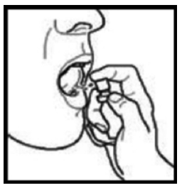 Hold beholderen oppreist og rett den inn i munnen. Pek dysen under tungen eller mot innsiden av kinnet. Bytt området du sprayer i munnen hver gang. Dette bidrar til å motvirke ubehag på ett sted.