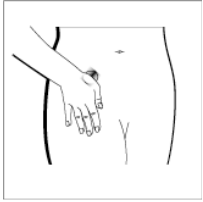 Hold i den andre delen av beskyttelsesfilmen, og fest den selvklebende delen av plasteret på et tørt hudområde på nedre del av magen. Fjern deretter den andre halvdelen av beskyttelsesfilmen og press resten av plasteret mot huden.