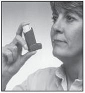 Legemidlet ligger inni en trykkbeholder som er festet i en inhalator (av plast med et munnstykke).