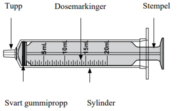 Merk: Hvis dosen er større enn kapasiteten til den orale sprøyten, gjenta administreringen inntil det totale volumet er gitt.