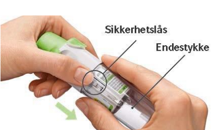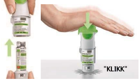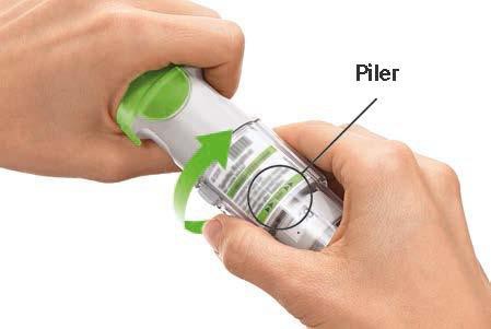 Sluttet du å vri på det gjennomsiktige endestykket før det sa “klikk”? Vri det gjennomsiktige endestykket med en kontinuerlig bevegelse til det sier “klikk” (1/2 omdreining). Doseindikatoren registrerer hver ufullstendig vridning og antall gjenværende doser reduseres.