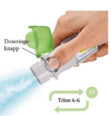 Spiolto Respimat virker i 24 timer så du må ta Spiolto Respimat kun ÉN GANG DAGLIG, helst til samme tidspunkt. Ta TO INHALASJONER hver gang du bruker den.