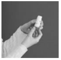 2. Hold inhalatoren rett opp med den røde dreieskiven ned.
